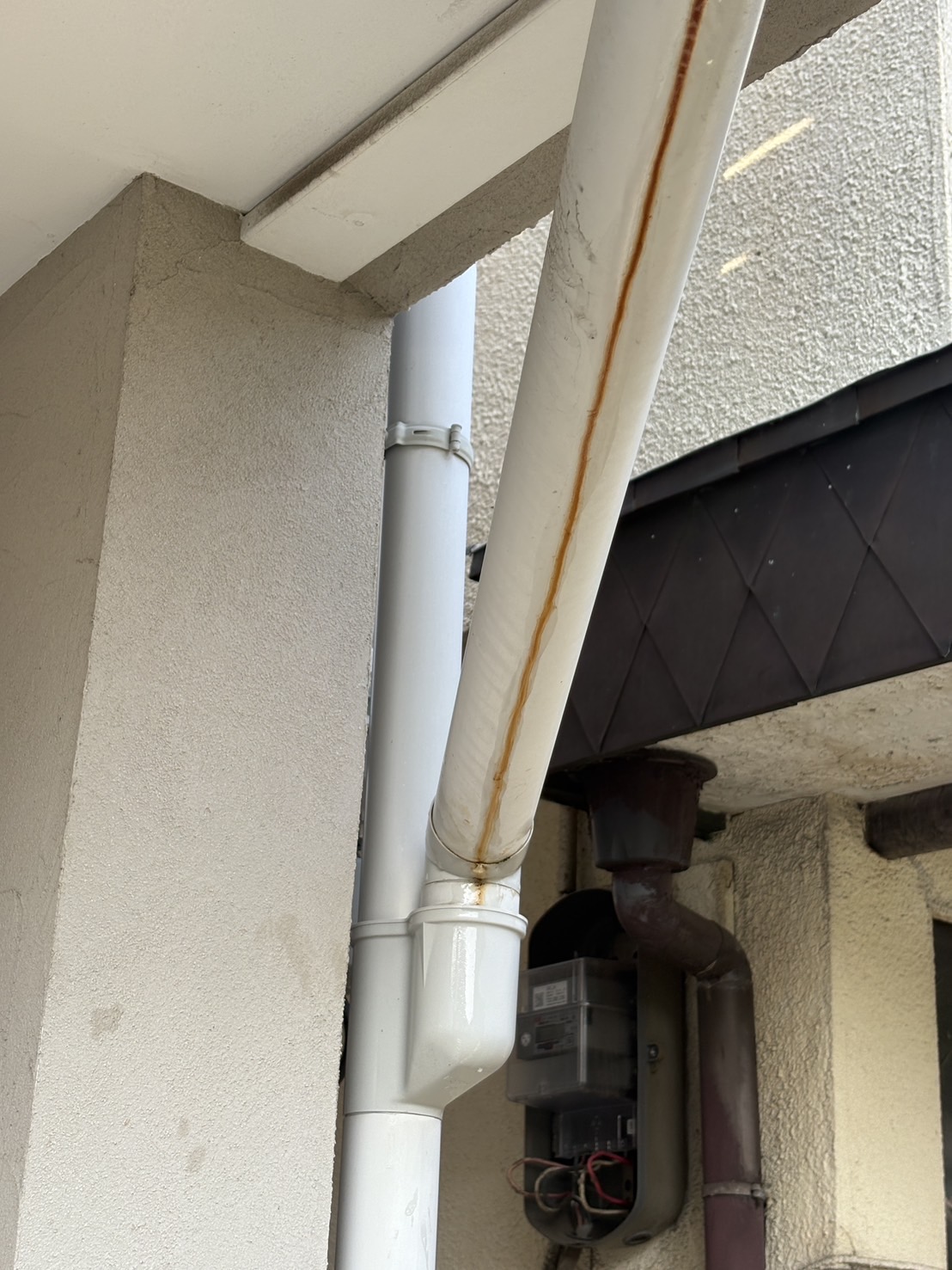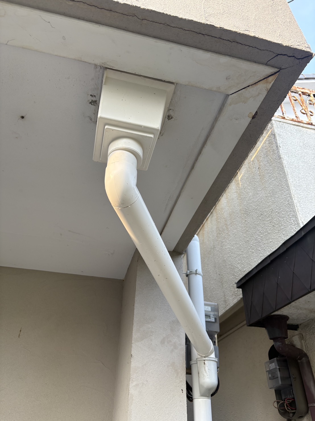 バルコニー下の樋が詰まり水が溢れると言う事で樋交換しました。
